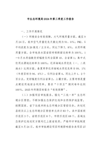 / 【七哥公文】2024年:市生态环境局2024年第三季度工作报告+更多免费公文+VX:QiGeGongWen2024