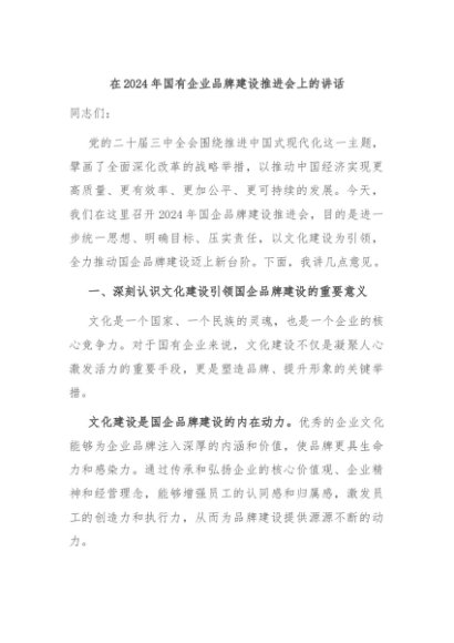 / 【七哥公文】2024年:在2024年国有企业品牌建设推进会上的讲话+更多免费公文+VX:QiGeGongWen2024