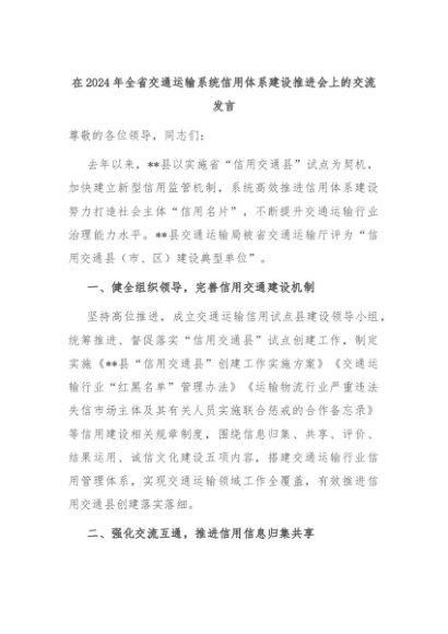 【七哥公文】2024年:在2024年全省交通运输系统信用体系建设推进会上的交流发言+更多免费公文+VX:QiGeGongWen2024