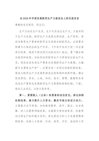 / 【七哥公文】2024年:在2024年市委发展新质生产力座谈会上的交流发言+更多免费公文+VX:QiGeGongWen2024