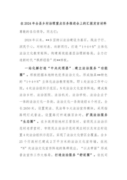 【七哥公文】2024年:在2024年全县乡村治理重点任务推进会上的汇报发言材料+更多免费公文+VX:QiGeGongWen2024