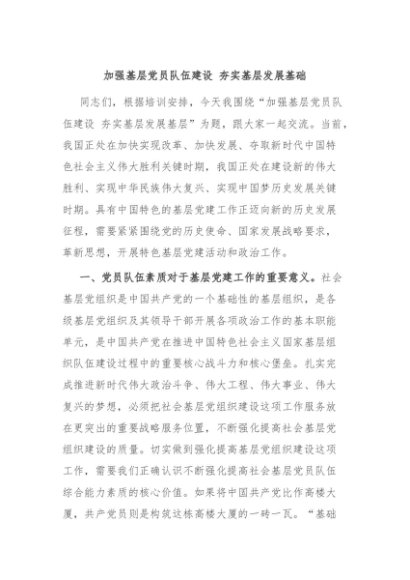 【七哥公文】2024年:加强基层党员队伍建设 夯实基层发展基础+更多免费公文+VX:QiGeGongWen2024
