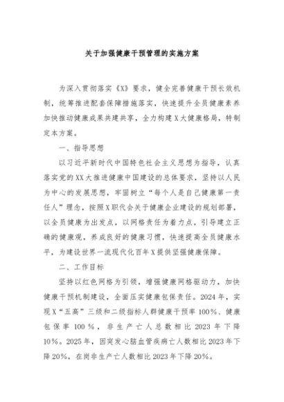 / 【七哥公文】2024年:关于加强健康干预管理的实施方案 (1)+更多免费公文+VX:QiGeGongWen2024