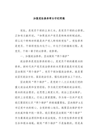 【七哥公文】2024年:加强党性修养带头守纪明德+更多免费公文+VX:QiGeGongWen2024