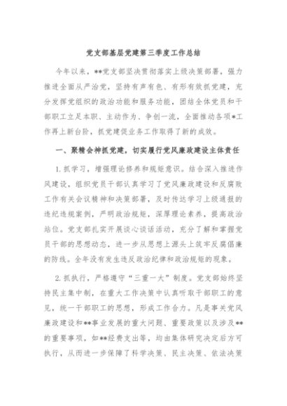 / 【七哥公文】2024年:党支部基层党建第三季度工作总结+更多免费公文+VX:QiGeGongWen2024