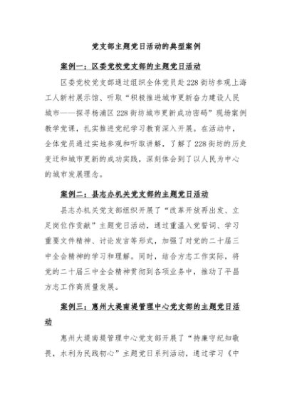 / 【七哥公文】2024年:党支部主题党日活动的典型案例+更多免费公文+VX:QiGeGongWen2024