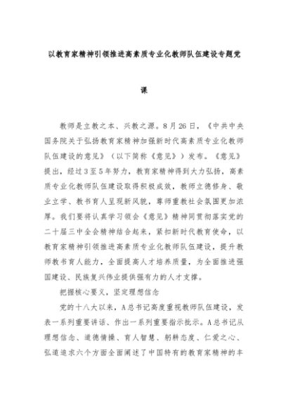 【七哥公文】2024年:以教育家精神引领推进高素质专业化教师队伍建设专题党课 (1)+更多免费公文+VX:QiGeGongWen2024