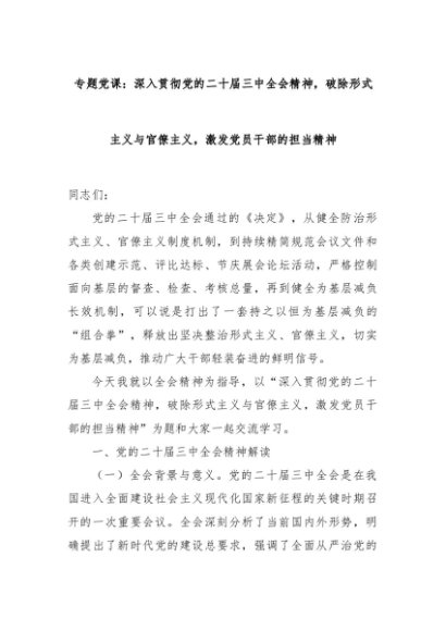 【七哥公文】2024年:专题党课:深入贯彻党的二十届三中全会精神,破除形式主义与官僚主义,激发党员干部的担当精神+更多免费公文+VX:QiGeGongWen2024