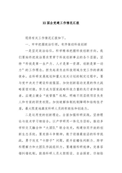 / 【七哥公文】2024年:XX国企党建工作情况汇报+更多免费公文+VX:QiGeGongWen2024