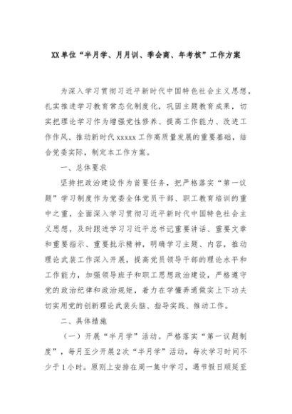 【七哥公文】2024年:XX单位“半月学、月月训、季会商、年考核”工作方案 (1)+更多免费公文+VX:QiGeGongWen2024