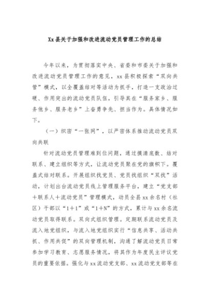 / 【七哥公文】2024年:Xx县关于加强和改进流动党员管理工作的总结+更多免费公文+VX:QiGeGongWen2024