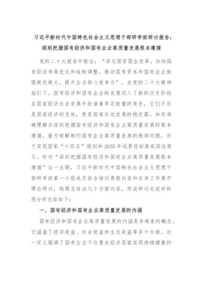 【七哥公文】2024年:习近平新时代中国特色社会主义思想干部研学班研讨报告:深刻把握国有经济和国有企业高质量发展根本遵循+更多免费公文+VX:QiGeGongWen2024