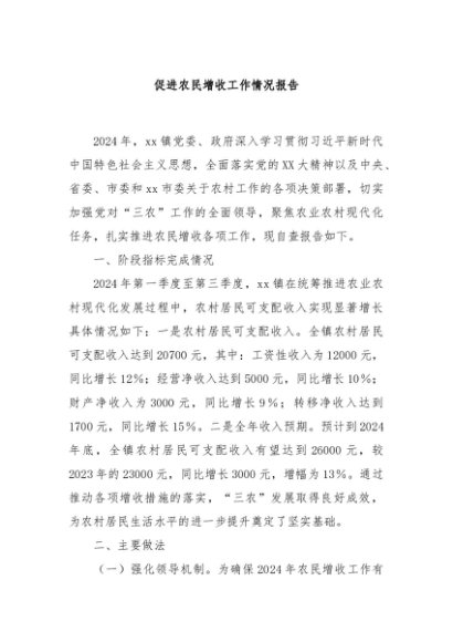 / 【七哥公文】2024年:促进农民增收工作情况报告+更多免费公文+VX:QiGeGongWen2024