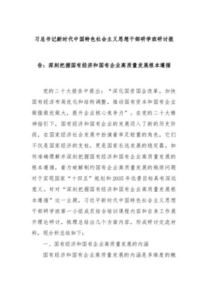 【七哥公文】2024年:习总书记新时代中国特色社会主义思想干部研学班研讨报告:深刻把握国有经济和国有企业高质量发展根本遵循+更多免费公文+VX:QiGeGongWen2024