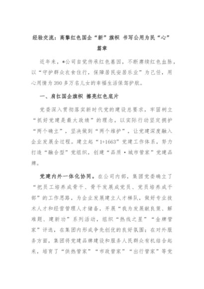 【七哥公文】2024年:经验交流:高擎红色国企“新”旗帜 书写公用为民“心”篇章+更多免费公文+VX:QiGeGongWen2024