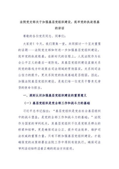 【七哥公文】2024年:法院党支部关于加强基层党组织建设,筑牢党的执政根基的讲话+更多免费公文+VX:QiGeGongWen2024