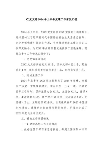 / 【七哥公文】2024年:XX党支部2024年上半年党建工作情况汇报+更多免费公文+VX:QiGeGongWen2024