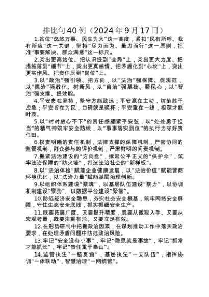 / 【七哥公文】2024年:排比句40例(2024年9月17日)+更多免费公文+VX:QiGeGongWen2024