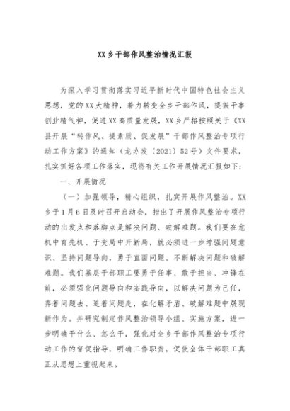 【七哥公文】2024年:XX乡干部作风整治情况汇报+更多免费公文+VX:QiGeGongWen2024