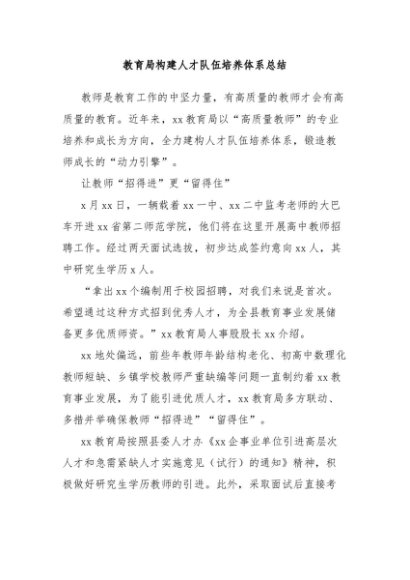 / 【七哥公文】2024年:教育局构建人才队伍培养体系总结+更多免费公文+VX:QiGeGongWen2024