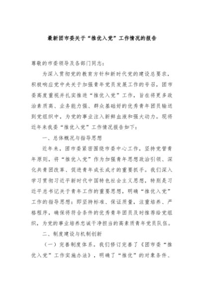 / 【七哥公文】2024年:最新团市委关于“推优入党”工作情况的报告+更多免费公文+VX:QiGeGongWen2024