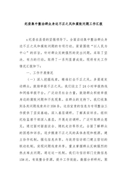 / 【七哥公文】2024年:纪委集中整治群众身边不正之风和腐败问题工作汇报+更多免费公文+VX:QiGeGongWen2024