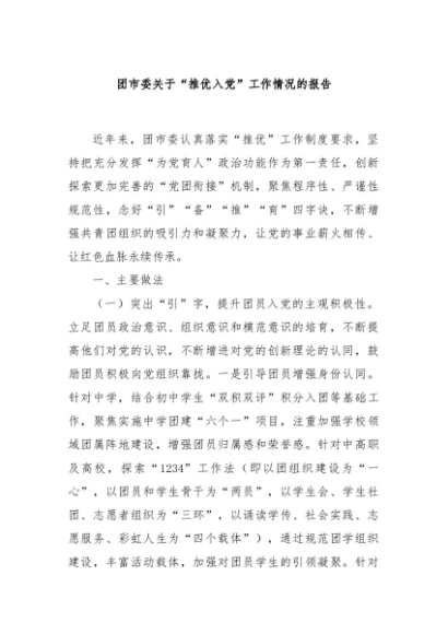 / 【七哥公文】2024年:团市委关于“推优入党”工作情况的报告+更多免费公文+VX:QiGeGongWen2024