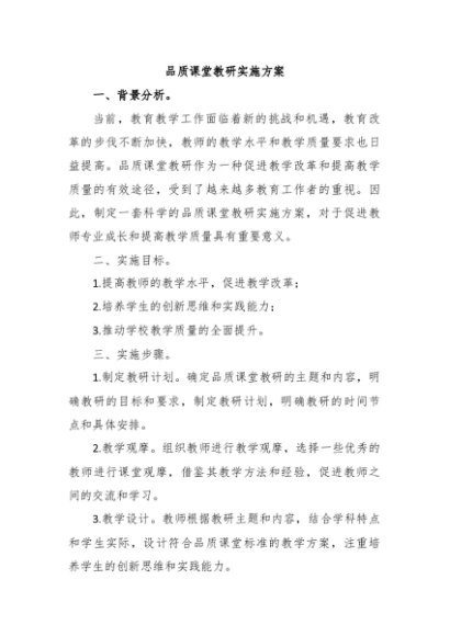 / 【七哥公文】2024年:品质课堂教研实施方案 (1)+更多免费公文+VX:QiGeGongWen2024