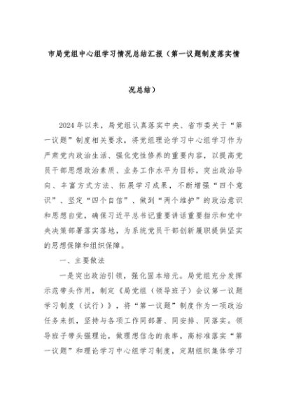 【七哥公文】2024年:市局党组中心组学习情况总结汇报(第一议题制度落实情况总结)+更多免费公文+VX:QiGeGongWen2024