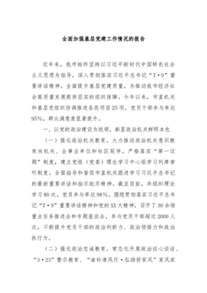 / 【七哥公文】2024年:全面加强基层党建工作情况的报告+更多免费公文+VX:QiGeGongWen2024