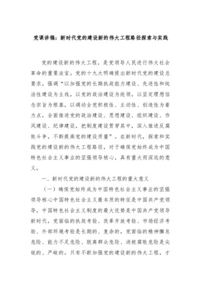 【七哥公文】2024年:党课讲稿:新时代党的建设新的伟大工程路径探索与实践+更多免费公文+VX:QiGeGongWen2024