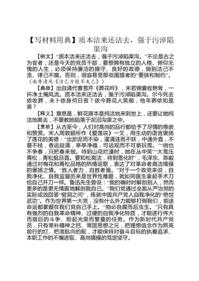 / 【七哥公文】2024年:【写材料用典】质本洁来还洁去,强于污淖陷渠沟+更多免费公文+VX:QiGeGongWen2024