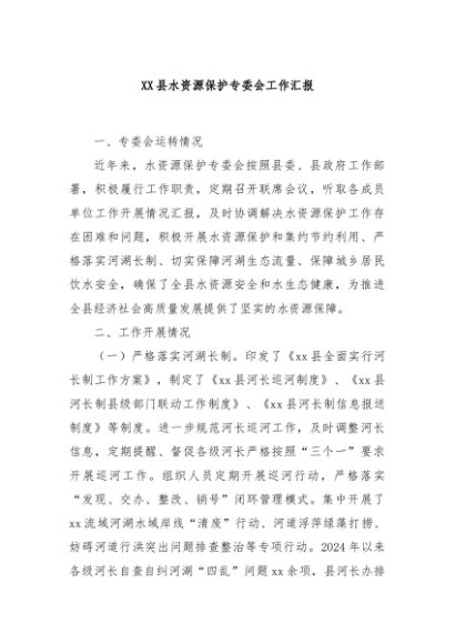 / 【七哥公文】2024年:XX县水资源保护专委会工作汇报+更多免费公文+VX:QiGeGongWen2024
