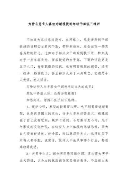 / 【七哥公文】2024年:为什么总有人喜欢对新提拔的年轻干部说三道四+更多免费公文+VX:QiGeGongWen2024