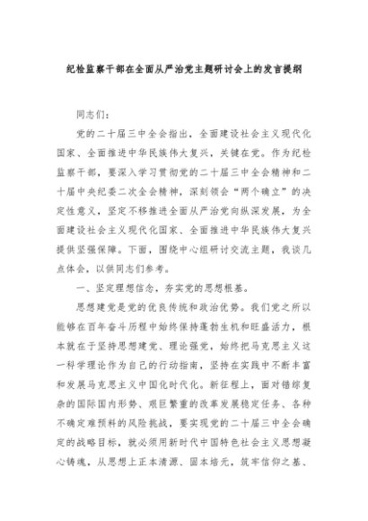 / 【七哥公文】2024年:纪检监察干部在全面从严治党主题研讨会上的发言提纲+更多免费公文+VX:QiGeGongWen2024