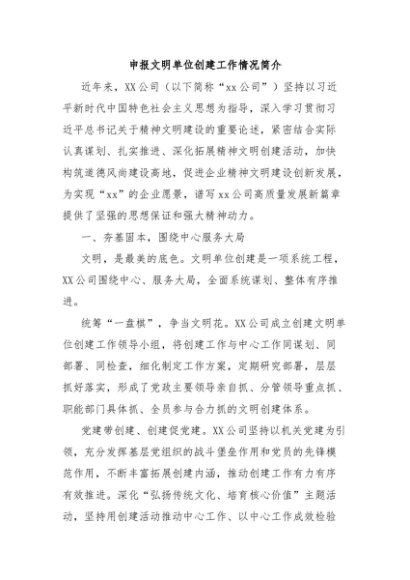 / 【七哥公文】2024年:申报文明单位创建工作情况简介+更多免费公文+VX:QiGeGongWen2024