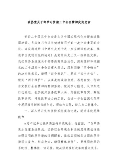 / 【七哥公文】2024年:政协党员干部学习贯彻三中全会精神交流发言+更多免费公文+VX:QiGeGongWen2024