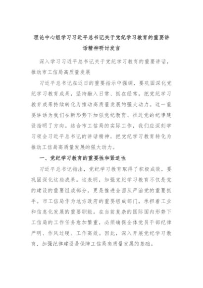 【七哥公文】2024年:理论中心组学习习近平总书记关于党纪学习教育的重要讲话精神研讨发言+更多免费公文+VX:QiGeGongWen2024