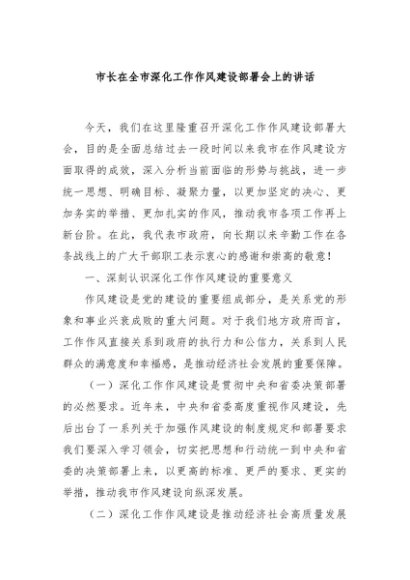 / 【七哥公文】2024年:市长在全市深化工作作风建设部署会上的讲话+更多免费公文+VX:QiGeGongWen2024