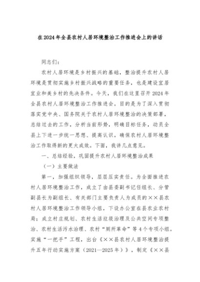 【七哥公文】2024年:在2024年全县农村人居环境整治工作推进会上的讲话+更多免费公文+VX:QiGeGongWen2024
