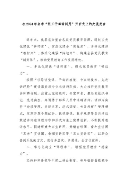 【七哥公文】2024年:在2024年全市“组工干部培训月”开班式上的交流发言+更多免费公文+VX:QiGeGongWen2024