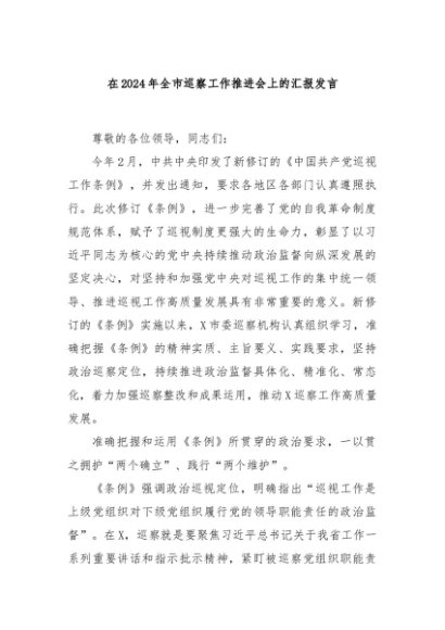 / 【七哥公文】2024年:在2024年全市巡察工作推进会上的汇报发言+更多免费公文+VX:QiGeGongWen2024