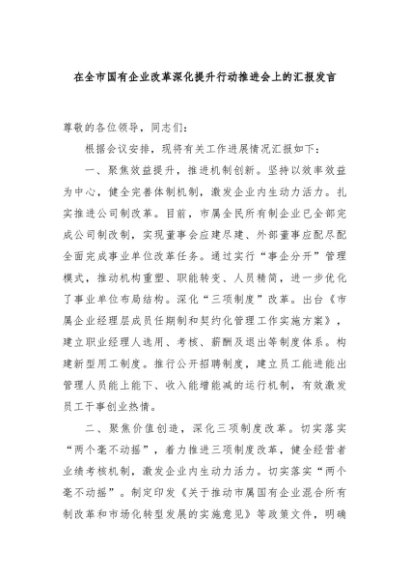 / 【七哥公文】2024年:在全市国有企业改革深化提升行动推进会上的汇报发言+更多免费公文+VX:QiGeGongWen2024
