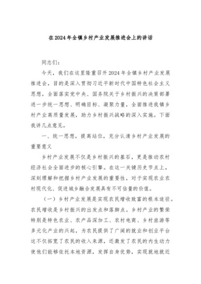 / 【七哥公文】2024年:在2024年全镇乡村产业发展推进会上的讲话+更多免费公文+VX:QiGeGongWen2024