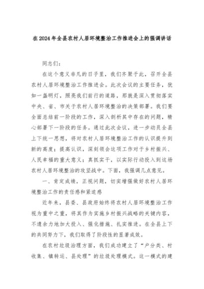 【七哥公文】2024年:在2024年全县农村人居环境整治工作推进会上的强调讲话+更多免费公文+VX:QiGeGongWen2024