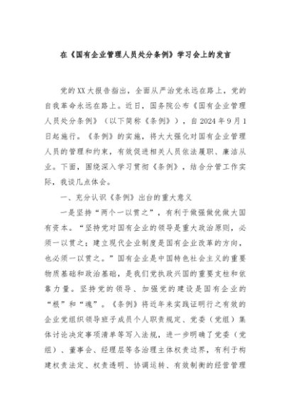 / 【七哥公文】2024年:在《国有企业管理人员处分条例》学习会上的发言+更多免费公文+VX:QiGeGongWen2024
