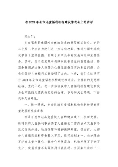 / 【七哥公文】2024年:在2024年全市儿童福利机构建设推进会上的讲话+更多免费公文+VX:QiGeGongWen2024