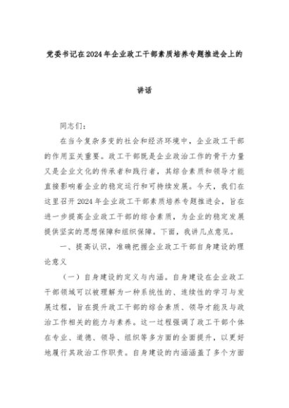 【七哥公文】2024年:党委书记在2024年企业政工干部素质培养专题推进会上的讲话+更多免费公文+VX:QiGeGongWen2024