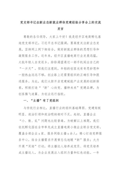 【七哥公文】2024年:党支部书记在新业态新就业群体党建经验分享会上的交流发言+更多免费公文+VX:QiGeGongWen2024