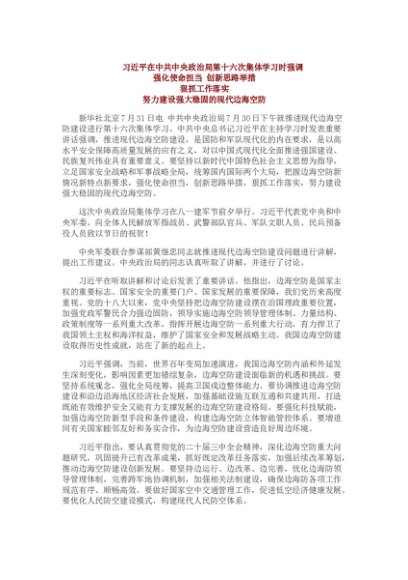 【七哥公文】2024年:习近平在中共中央政治局第十六次集体学习时强调:强化使命担当 创新思路举措 狠抓工作落实 努力建设强大稳固的现代边海空防+更多免费公文+VX:QiGeGongWen2024
